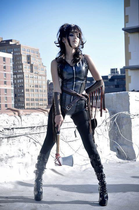 This listing is for the bodysuit and gloves ONLY. The brown belts/pouch, pantyhose, and throwing axe are not inclued