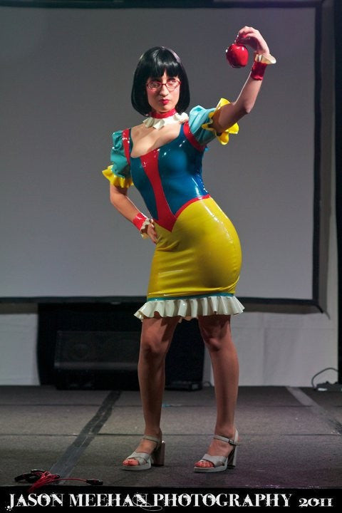 Created as a custom piece for the lovely Little Mel, this costume is to die for! A Disney classic with a naughty twist! This outfit hugs all the curves and gives the innocent snow white a little edge. Finished with reversible choker and wrist cuffs.
