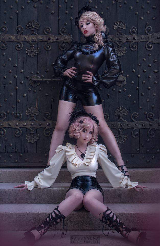 From our new collection, Countess Noir, this romper is sophisticated and playful; designed in a style that's comfortable to wear but still snug in all the right places with a gorgeous silhouette. Featuring princess bodice seams, bishop sleeves, ruffle details, contrast trim, and finished with a zipper in the back for easy dressing. Shown in black and transparent black.