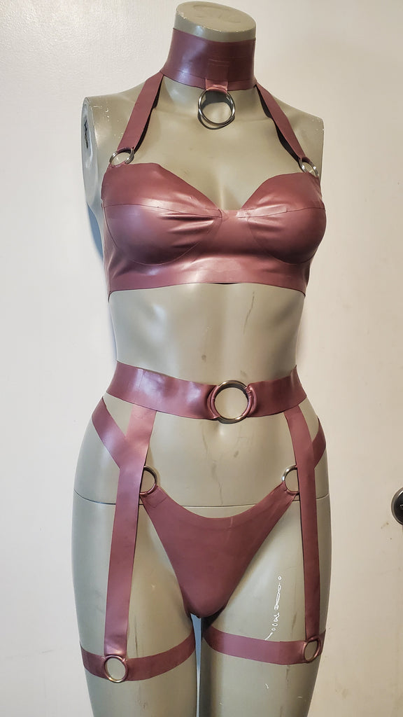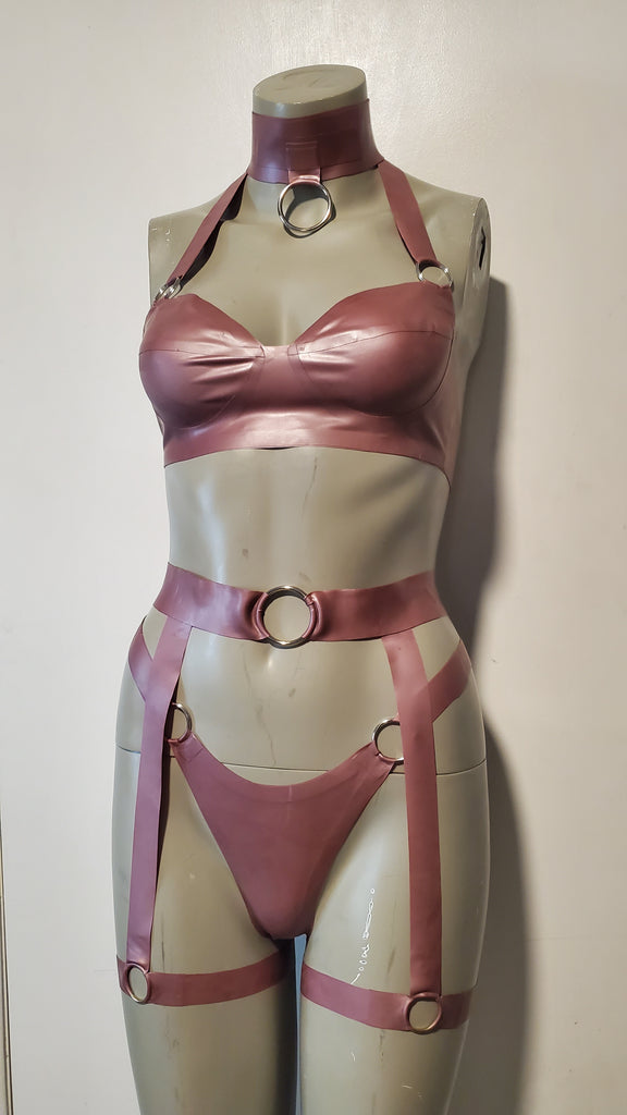 This versatile latex thong is sleek and sexy with o ring details and straps. Add this classic style thing to your collection or save money when you get the full set.